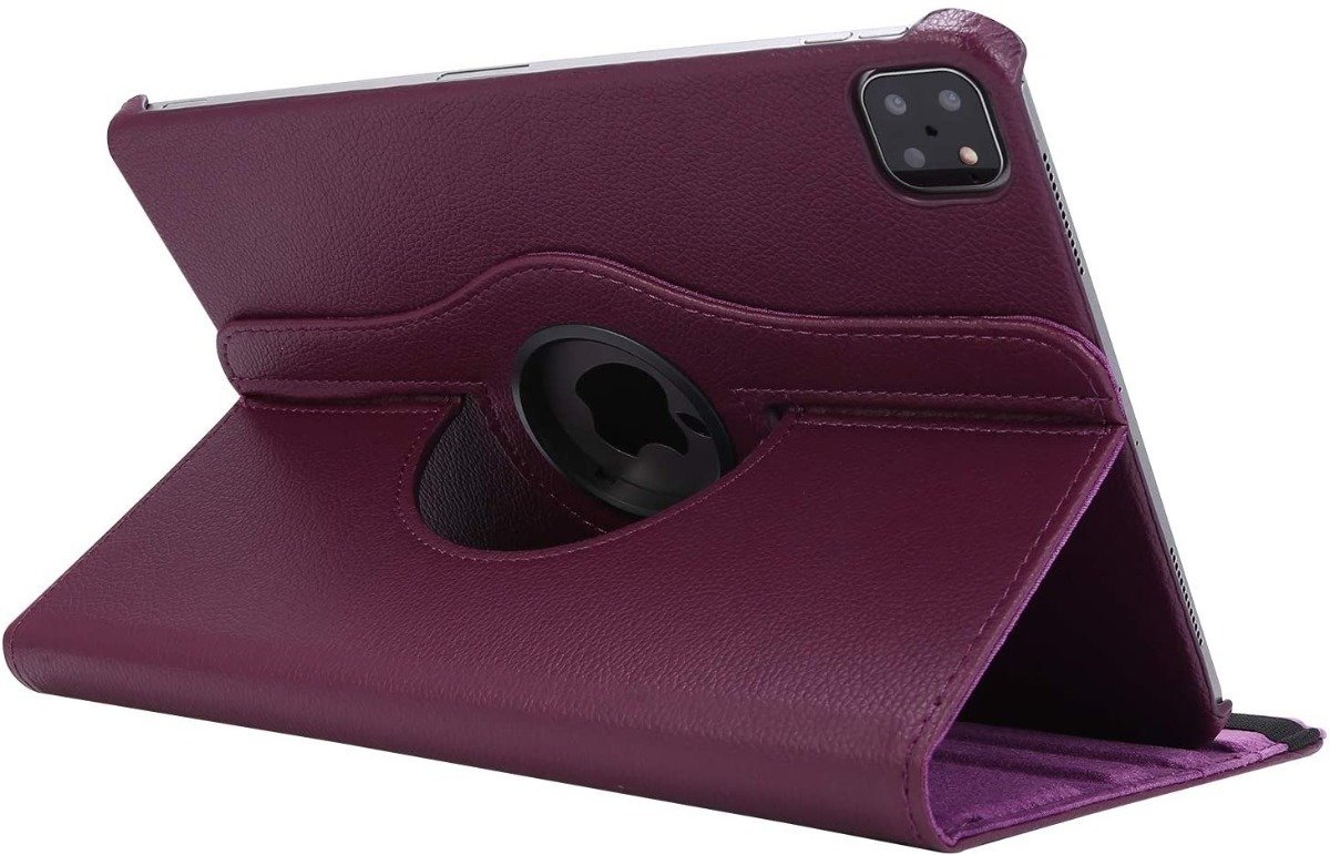 Funda Protectora para Ipad Pro 12.9 (2020) Funda de eco cuero giratoria para Ipad Pro 12.9 (2020) Características – Con dos posiciones disponibles puede girar en 360 grados – Utilizable como soporte para ver vídeos o escribir – Diseño cómodo y ergonómico – Seguro cierre elástico. Fácil instalación, Incluye las ranuras para cámara y conectar cargador sin necesidad de sacar la funda. Protege de rayas y golpes. Esta Funda Puedes colocarla en forma horizontalmente y verticalmente.